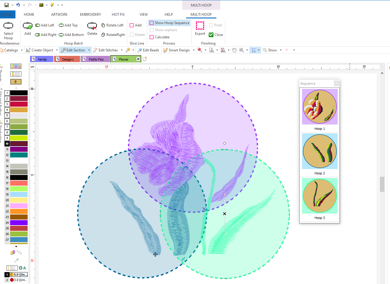Improved display of the graphical sequence list of embroidery objects.