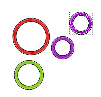 Al escalar en forma proporcional un objeto de tipo camino con llenado zig-zag, E, EE o puntada cuadrada, el ancho del llenado se escala junto con la geometría del camino.