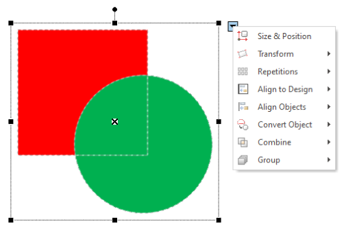 All the block functions are located in the the Main toolbar. They are grouped by function type (left to right): Scale / Mirror / Rotate : single or multiple objects / object group Combine objects: requires 2 or more objects, usually overlapped / object group Repetitions: single or multiple objects / object group Group: requires multiple objects or single / multiple object groups Align: single or multiple objects / object group Change Order: single or multiple objects / object group Convert: single or multiple objects / object group