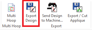 ➢Click on the menu File, sub-menu Save. ➢Click on the option "Embroidery". ➢Click on "Export Embroidery Design Files". |