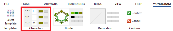 ➢Change the characters of the monogram in the boxes "A", "B" and "C".