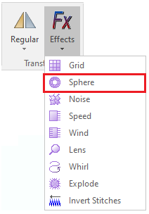 Select the block of stitches ➢Click on the arrow next to the "Effects" button. ➢Click on "Sphere" transformation. |