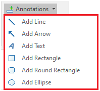 ➢Click on the Annotations button to unfold the list of available annotations (ToolTab Home). |