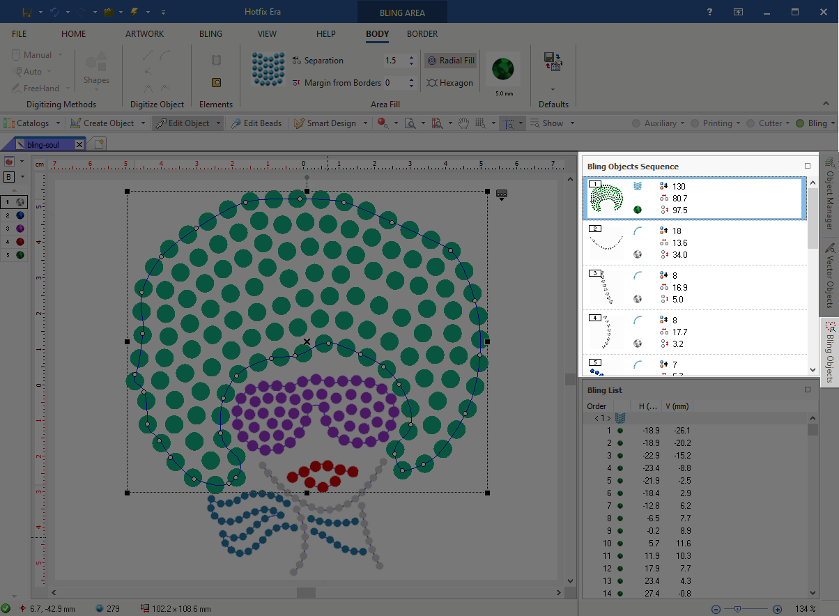 This is the window you see when the software opens, a bling design is loaded and the Bling Objects tab is enabled.