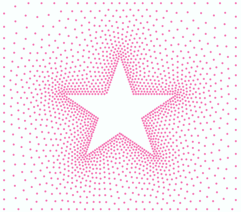 This fill style places the bling beads (same color, size or shape) outside a closed area, where beads spacing increases from the center to the external shape. |