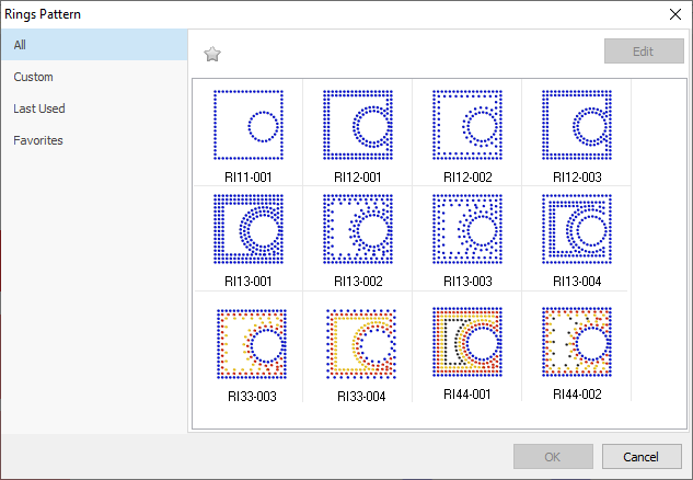 Select any of the pre-designed ring patterns, or create a custom ring pattern.