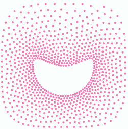 This fill style places the bling beads (same color, size or shape) outside a closed area, where beads spacing increases from the center to the external shape. |