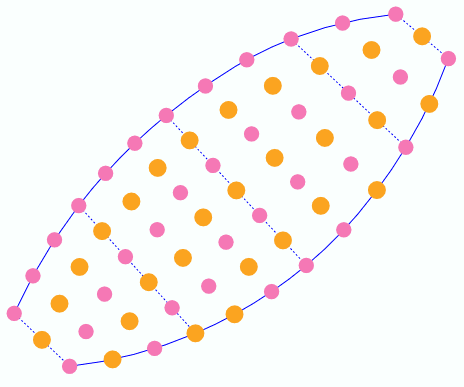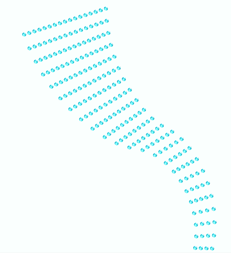 This fill style places the bling beads (same color, size or shape) on a closed area, as a set of paths (rays) with regular fill that follow the directions of the pair of nodes (columns).