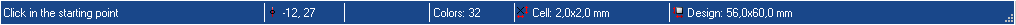 The color bar is located at the left of the cross stitch maker. You must define the primary color (or foreground) and the secondary color (or background), which are displayed on the bottom of the color bar. Foreground color: This color will be used for lines, shape borders and text. ➢Press the mouse left button on the desired color box. Background color: This color will be used to fill the inside of the closed shapes. The background color replaces the image area that was either cut or moved. ➢Press the mouse right button on the desired color box. |