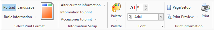 When you execute the PRINT FORMAT function, the Print Format assistant is open. This tool offers all the options to select any of the available formats and to select the information to print.