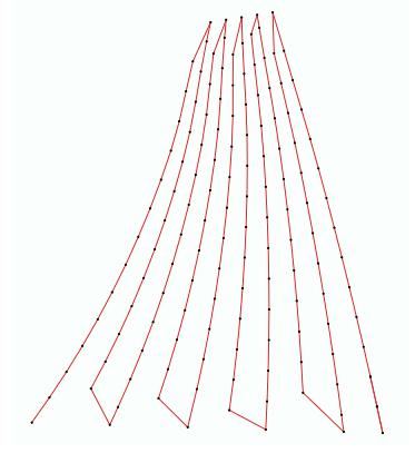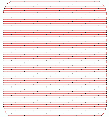 This fill style places pattern stitches on an area defined by a column object type. Stitches are oriented according to the direction lines defined by the node pairs of the column.