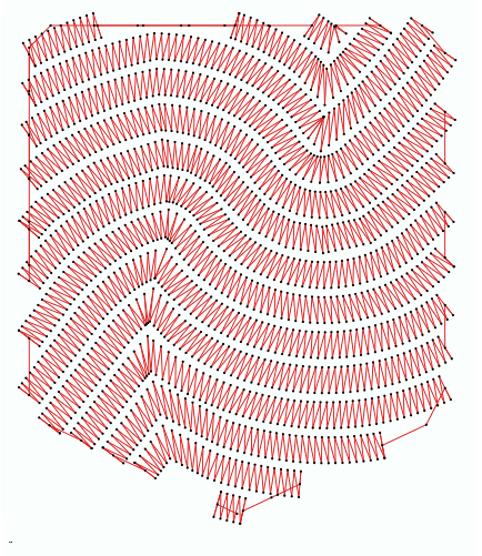 This fill style places a set of paths with zig-zag stitches on a closed area. The paths of zig-zag stitches are created according to the shape of 1 curved direction line. |