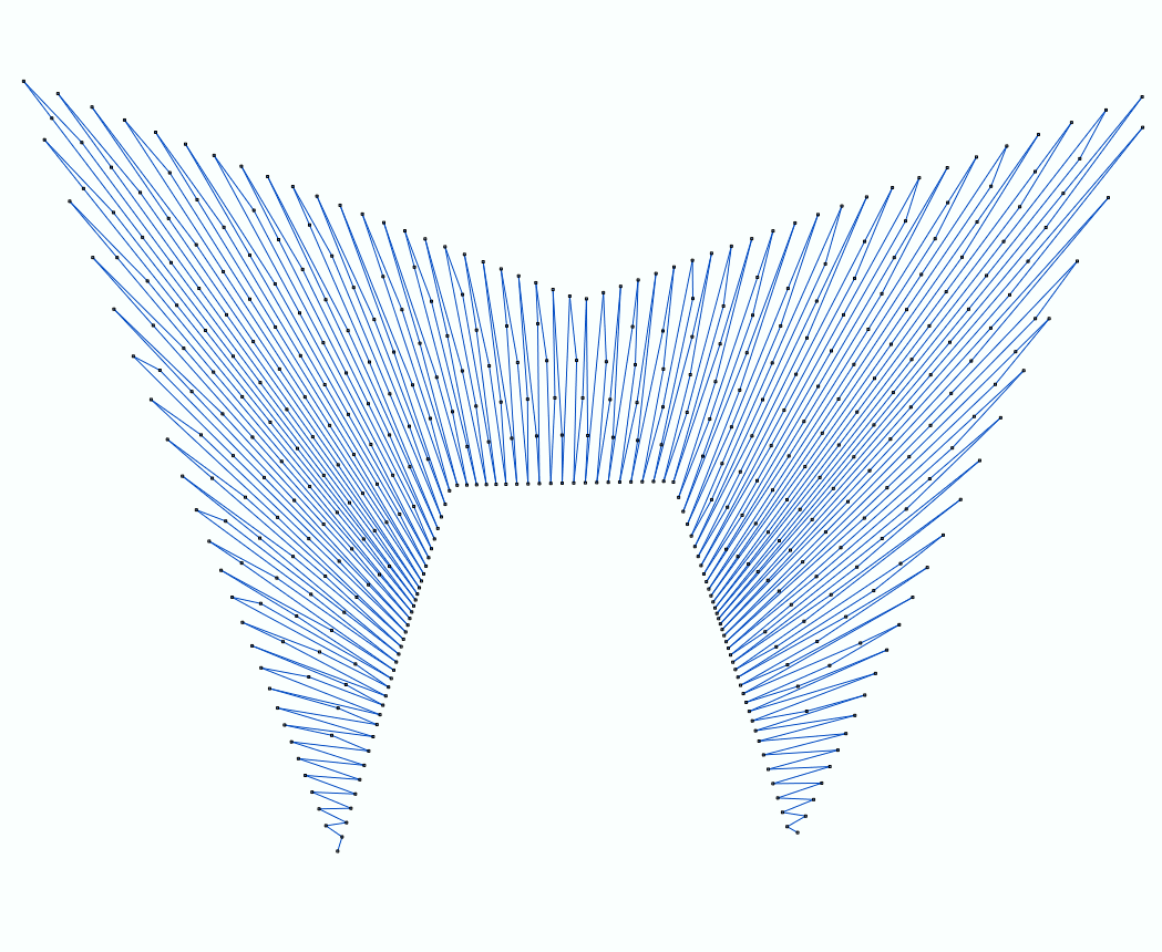 •Levels: The maximum number of intermediate stitches to create when required. oLevel Value: Distance of the intermediate stitches, relative (percentage) to the stitch length. •Layout options: centered or hidden oCentered: intermediate stitches will be centered between the last and the next stitch. oHidden: intermediate stitches will be orientated towards the next stitch. •Trigger at: Set the minimum opening value (larger side / smaller site) to create intermediate stitches.