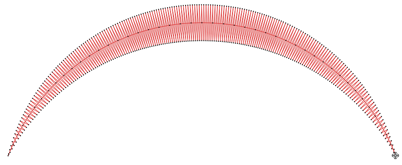 If the object has only one direction line, the angle of that direction line will define the angle of most of the generated stitches. If the object has several direction lines, the angle of the generated stitches included between 2 direction lines will rotate between the angles of those direction lines. |