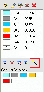 In the next step you will clean this area, leaving only one color. This task will result in a much brighter surface. You will select all the colors that appear in the box. In order to select more than one color, use the Ctrl or Shift keys when clicking on them from the "Colors of Selection" box.