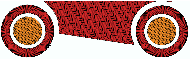 ➢Digitize the wheels interior by placing the mouse cursor over the shape and clicking on them. Hint: By pressing and holding the Ctrl key, you will be able to trace several shapes at a time. ➢The shapes will be recognized and will be surrounded by a flashing dashed line. ➢Click on the Enter key to confirm the trace, confirm the object and generate the stitches. |