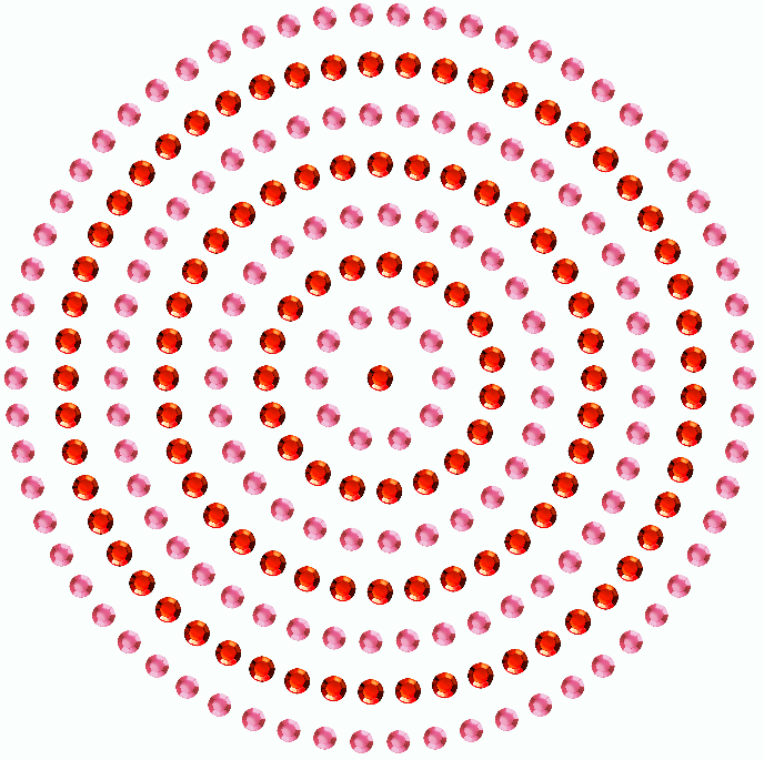 This fill style distributes several types of bling beads on a closed area, as a set of concentric paths with regular bling fill (inner rings).