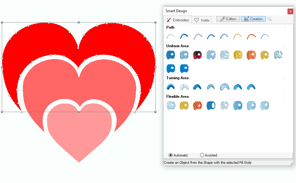 By using the SMART DESIGN tool, the creation of the new embroidery object requires just one click