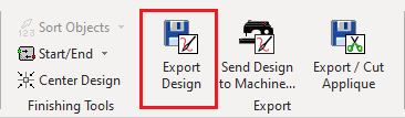 ➢Click on the tooltab EMBROIDERY. ➢Click on the "Export design" function (Export). |